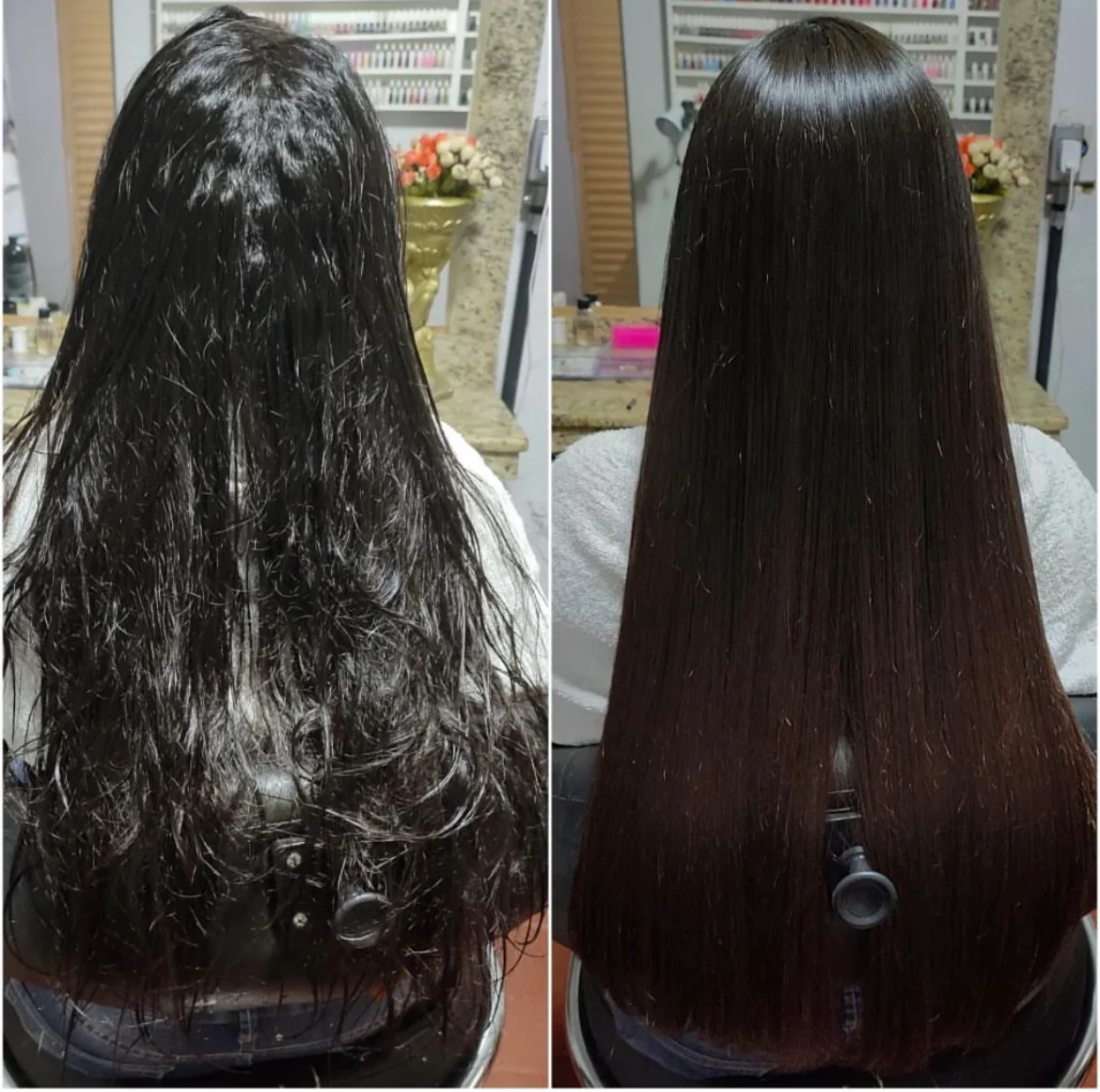 4. Proces uszczelniania: Aby zakończyć zabieg, włosy są suszone, a następnie prasowane. To nie tylko uszczelnia wilgoć, ale także zapewnia, że składniki odżywcze są zablokowane, nawilżając włosy i pozostawiając je z błyszczącym wykończeniem.